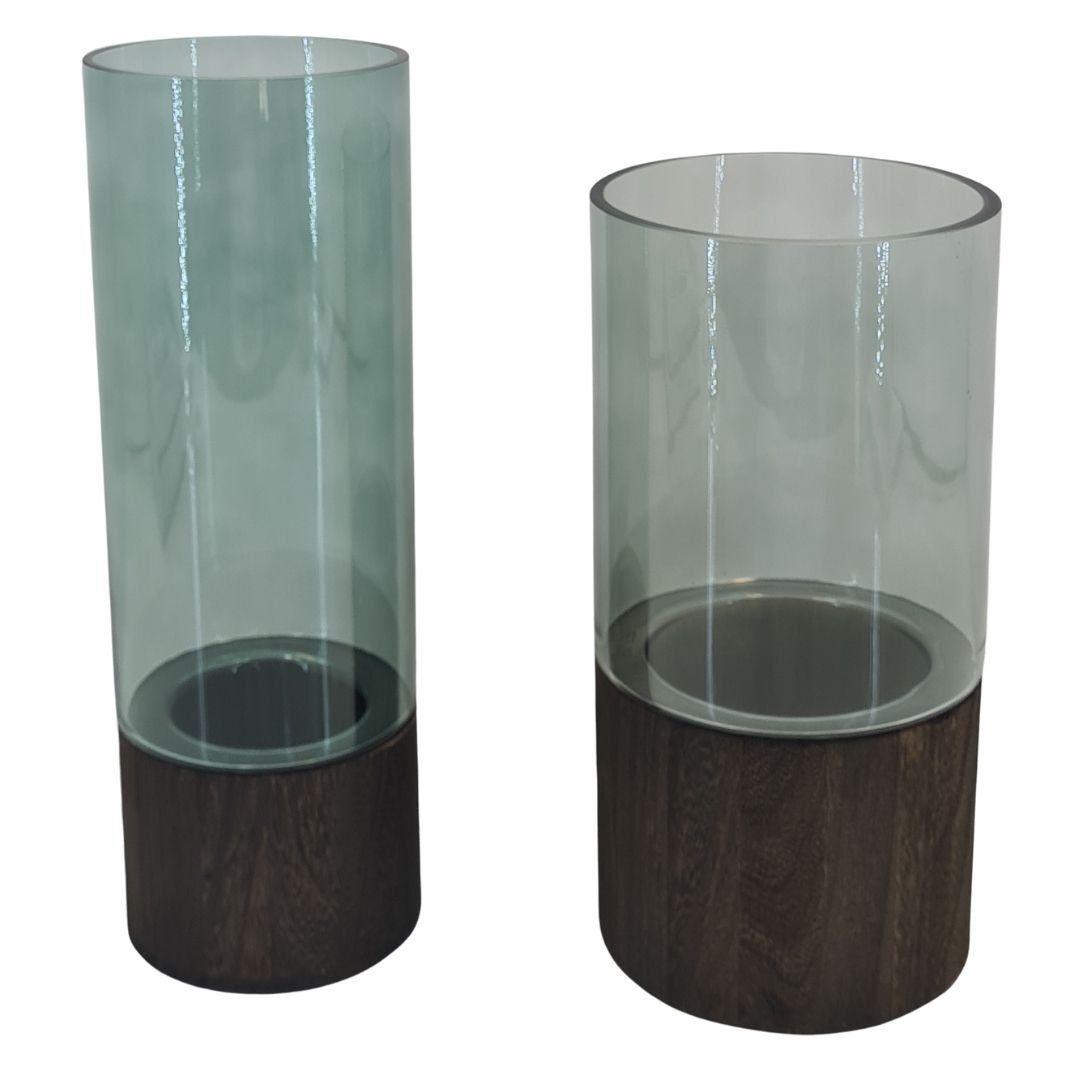 71358-2 li Set Ahşaplı Cam Vazo12x36cm